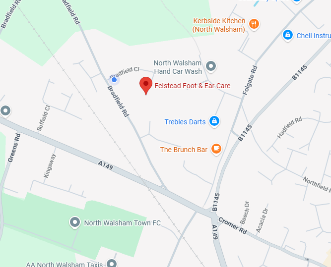 Clinic Location is Bradfield Close, North Walsham, NR28 0HL,